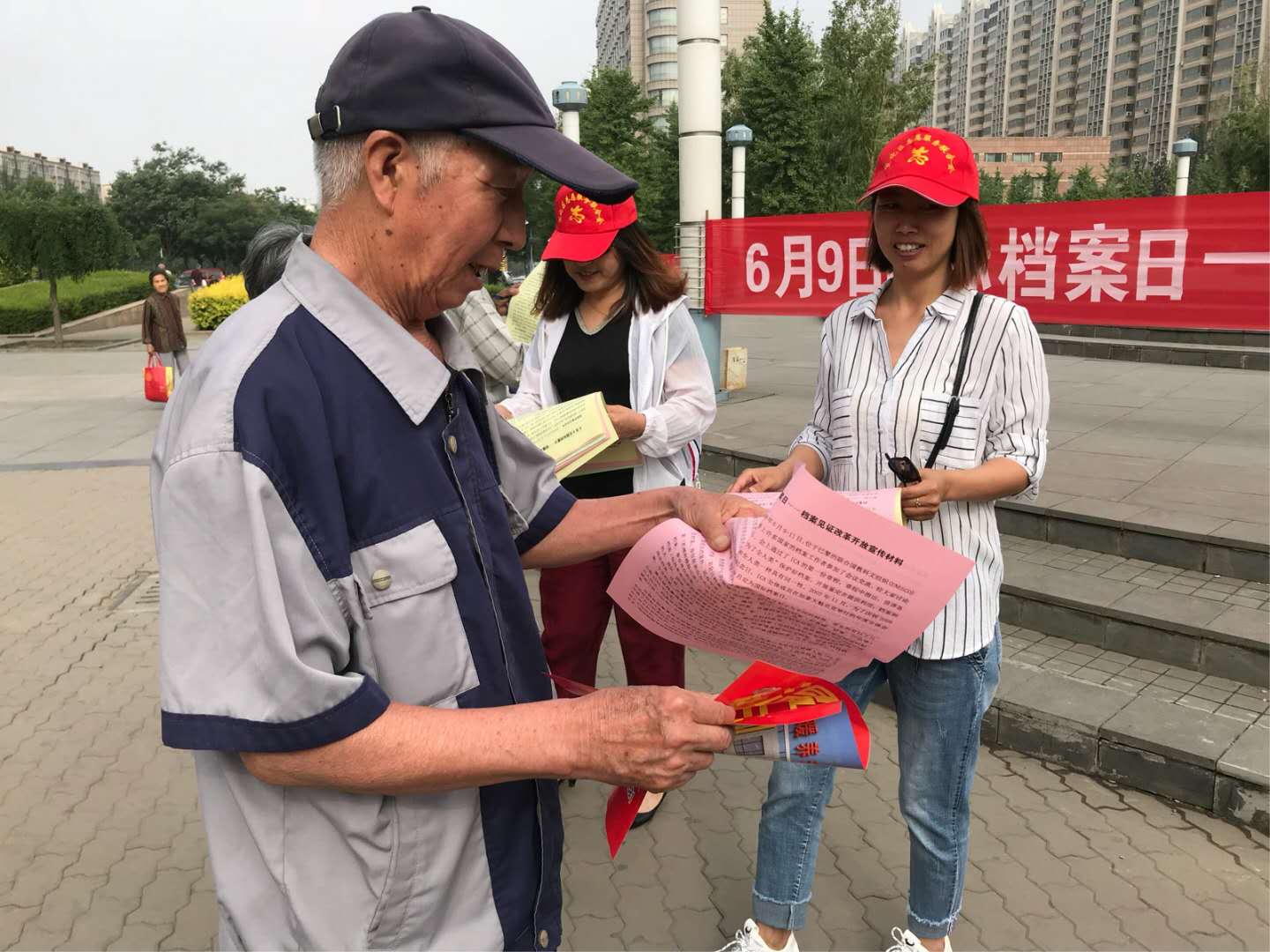 今年6月9日是国际档案理事会确定的第11个国际档案日,从6月9日开始,宣化区档案史志局开展了一系列宣传活动。在宣化中山广场,通过悬挂标语、发放传单、现场问答等形式,向社会传达档案的价值和档案保护的重要意义,让老百姓明白档案就在身边,与我们每一个人息息相关。通过宣传,不断提升全民档案法规意识,为做好全区档案工作夯实基础。活动期间,宣化区档案馆展室对外开放,并在档案馆室外和楼道悬挂宣传标语。6月11日,接待社区居民来馆参观,展示改革开放40年来宣化区社会经济文化的发展成果。